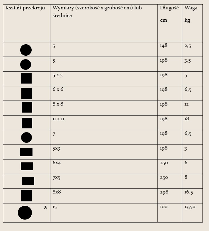 np. słupek 5×198 to koszt 19zł netto, natomiast 5x5x198 kosztuje 27,50zł netto 🙂